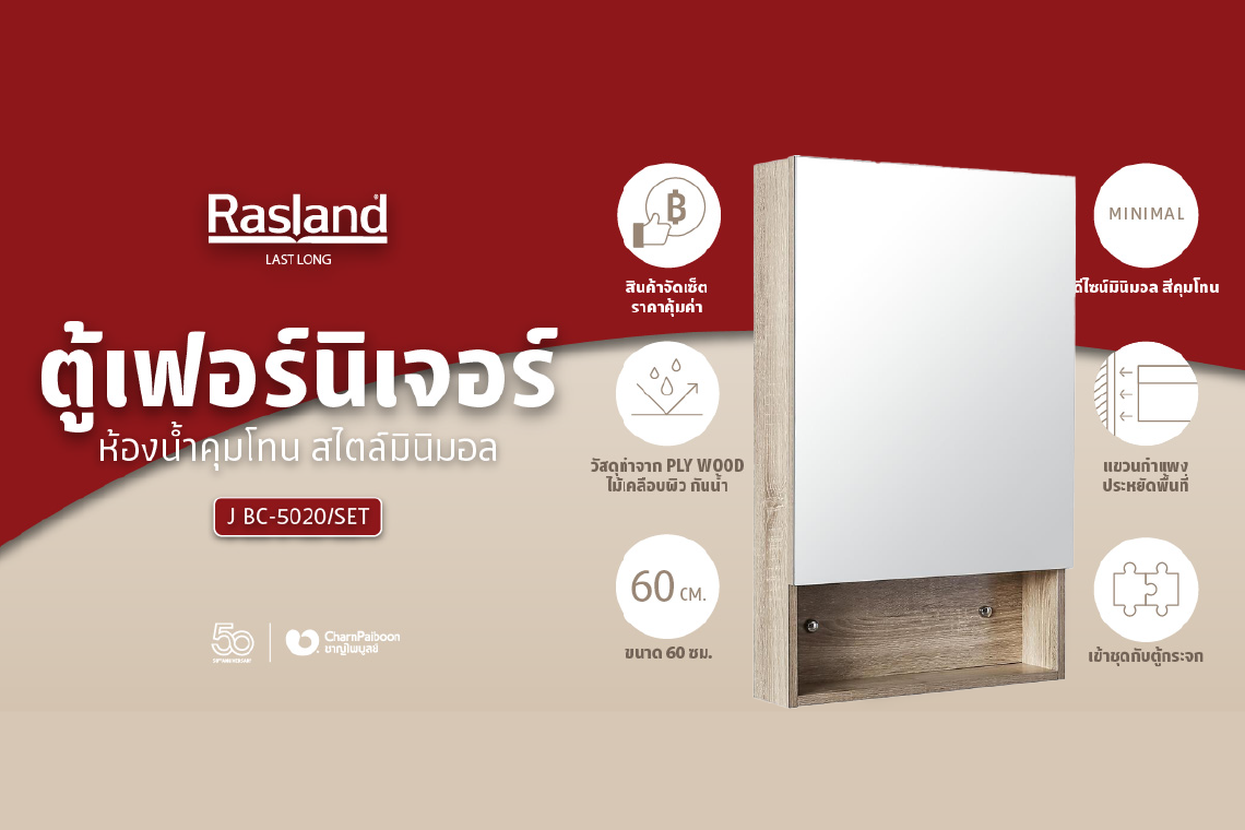 - เข้าเซ็ตกับตู้กระจก Rasland รุ่น J BC-5036-MR50-02 เพิ่มความมินิมอล