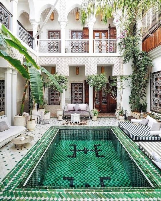 กระเบื้องสระว่ายน้ำโทนสีเขียว หรือสีเขียวเทอร์ควอยซ์ ให้ความรู้สึกผ่อนคลาย เป็นธรรมชาติ