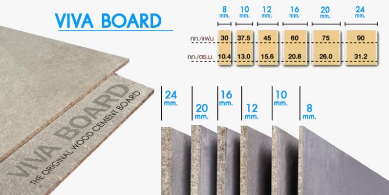 วีว่าบอร์ดเหมาะกับงานที่เน้นความเร็ว เพราะติดตั้งง่าย สามารถรับน้ำหนักได้ดี มีขนาดมาตรฐานที่ 1,200 x 2,400 มิลลิเมตร และความหนาตั้งแต่ 8 มิลลิเมตร ไปจนถึง 24 มิลลิเมตร