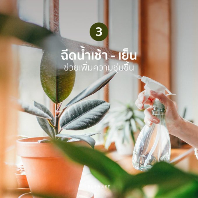 แต่ขอบอกไว้ตรงนี้เลยว่าการฉีดน้ำไม่ได้ช่วยอะไรเลย เพราะหลังฉีดอากาศรอบๆ อาจจะชื้นขึ้นจริง แต่ก็ชื้นอยู่ได้ไม่ถึง 5 นาที แถมการทำให้ดินชื้นอยู่ตลอดยังเพิ่มโอกาสเสี่ยงให้มีเชื้อราที่อาจทำให้รากหรือใบเน่าได้ด้วยนะ