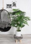 ต้นหมากเหลือง (Butterfly Palm) เป็นปาล์มประดับชนิดหนึ่งที่นิยมปลูกประดับไว้ภายในบ้านหรือปลูกในแปลงจัดสวน เนื่องจาก ก้านใบ และใบมีสีเหลืองอมเขียวสวยงาม ลำต้นไม่สูงมากนัก มีอายุยืนยาว สามารถปลูก และดูแลง่าย ชอบแสงแดด ควรปลูกในที่โล่ง กลางแจ้ง ควรรดน้ำทุกวัน ดินควรเป็นดินร่วนเหนียวหรือดินเหนียวที่มีอินทรียวัตถุพอสมควร และใส่ปุ๋ยคอกหรือปุ๋ยหมัก ปีละ 2 ครั้ง ต้นนี้ไม่ค่อยพบโรคที่ทำความเสียหาย จะมีปัญหาก็แต่แมลงเท่านั้น