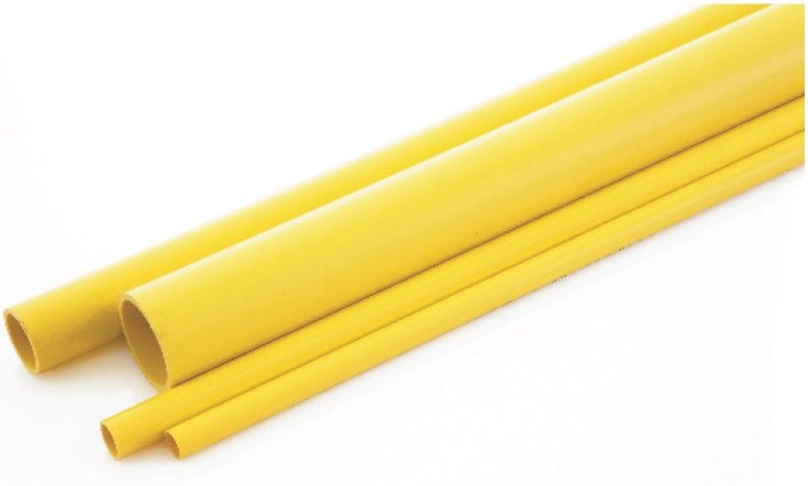 ท่อสีเหลือง หรือที่คนเรียกทั่วไปว่าท่อร้อยสายไฟ มีขนาดระหว่าง 3/8” ถึง 4” จริงๆแล้วท่อร้อยสายไฟสีเหลืองก็มีลำดับความหนาเหมือนกัน แต่ขนาดท่อที่คนใช้ในระบบร้อยสายไฟบ้านทั่วไปจะมีแค่ลำดับเดียวก็คือลำดับ 1 หรือตัวที่หนาสุด (เทียบได้กับท่อสีฟ้า 13.5)