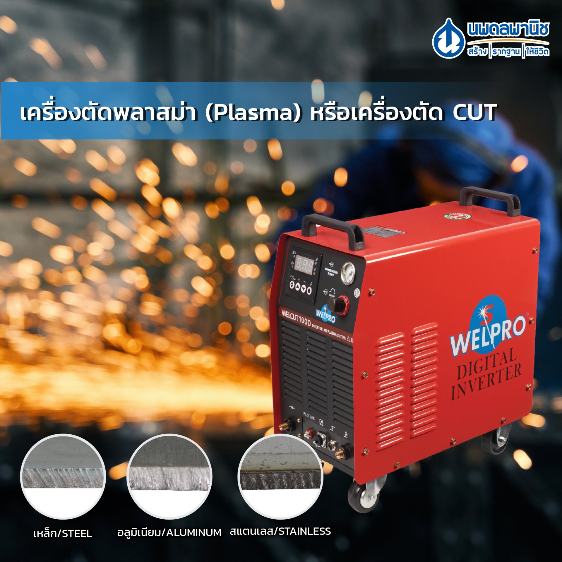 4. เครื่องตัดพลาสม่า (Plasma) หรือเครื่องตัด CUT เป็นตู้เชื่อมที่ต้องต่อกับปั๊มลม ใช้ลมช่วยในการตัด เครื่องตัดพลาสม่าสามารถตัดชิ้นงานที่เป็นโลหะได้ทุกชนิด แต่ความหนาไม่เท่ากันขึ้นอยู่กับความแข็งและเหนียวของโลหะ ซึ่งงานเหล็กจะตัดได้ความหนามากที่สุดรองลงมาคือสแตนเลส และอลูมิเนียม ตามลำดับ