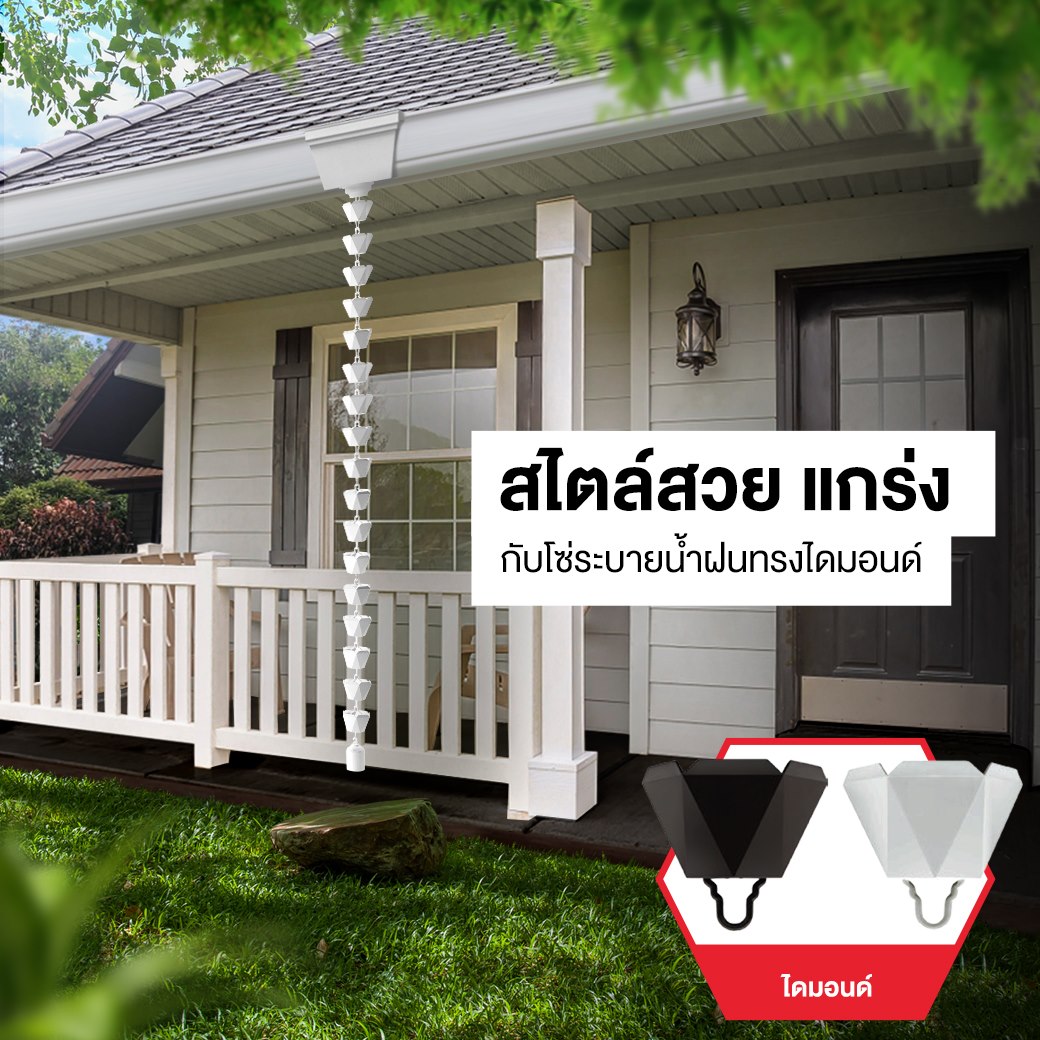 หากคุณกำลังต้องการตัวช่วยในการป้องกัน และแก้ไขปัญหาเหล่านี้ ได้ไม่ยาก ด้วย “โซ่ระบายน้ำฝน” ที่จะช่วยป้องกันการกระจายของน้ำฝน ไม่ให้กระเด็นไปบริเวณอื่น และยังออกแบบให้ดูสวย กลมกลืน ออกแบบมาเป็นพิเศษไร้รอยเชื่อมต่อ ซ่อนตะขอแขวนราง