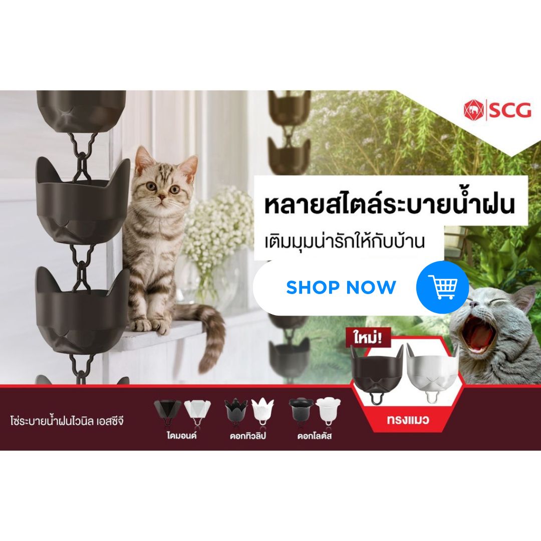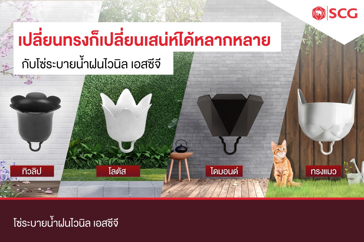 ดังนั้น มาเตรียมพร้อมรับมือหน้าฝนด้วย ชุดโซ่ระบายน้ำฝน เอสซีจี จึงเป็นสิ่งที่ตอบโจทย์มากที่สุด ทั้งคุณภาพ ความแปลกใหม่ของดีไซน์ที่หลากหลายรูปทรงให้เลือก ช่วยเพิ่มสีสันให้สวนสวยดูมีชีวิตชีวายิ่งขึ้น เพียงสวมครอบเข้ากับจุดระบายน้ำบริเวณระเบียง ก็ควบคุมทิศทางการระบายน้ำได้ตรงจุด